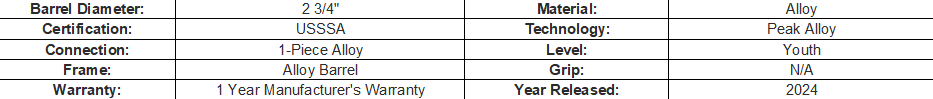 The Peak USSSA baseball bat is available in two different drop weights, so find the one for you and start mashing. Get your Rawlings Peak USSSA baseball bat now!