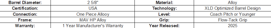 The Easton MAV1 -10 Junior Big Barrel is crafted with young hitters in mind. The large 2 5/8” barrel conforms to Junior Big Barrel standards, providing a bigger hitting surface for more consistent contact and confidence at the plate. But don't be fooled by the big barrel – the weight keeps the bat light and manageable, allowing young players to generate a smooth, controlled swing for optimal bat control.
