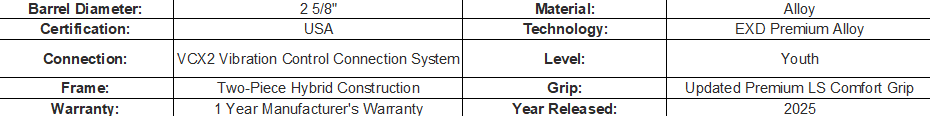 Dynamic alloy performance meets forgiving composite feel in the Louisville Slugger Select PWR™, designed to give young hitters the benefits of a balanced swing weight and easy power. Select PWR pairs its EXD Premium Alloy Barrel with a composite handle, delivering maximum comfort and performance.