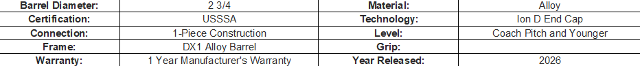 Keep your cool at the plate and barrel up more pitches with the 2026 Voodoo® One (-10) Junior Big Barrel Baseball Bat, optimized for young hitters to find their footing in the batter’s box. This Voodoo One’s enormous DX1 Alloy Barrel checks in with a 2 ¾” diameter – the maximum allowed in travel baseball – to give players a larger sweet spot while maintaining control of their swing. The Voodoo One JBB has a lightweight one-piece alloy construction that helps players swing faster and create better contact.