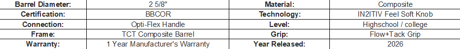Engineered with ThermoComposite technology, the Hype Fire BBCOR features a hot, responsive barrel with a maximized sweet spot and explosive feedback on contact. The Connexion Max joint eliminates vibration while unlocking seamless energy transfer, and the Opti-Flex handle is fine tuned by drop weight to match the elite feel that players demand. Designed with a Gen2 intuity Soft Knob and finished with a bold fire-themed colorway, this bat blends innovation with unmistakable Hype Fire energy – now BBCOR certified and ready for