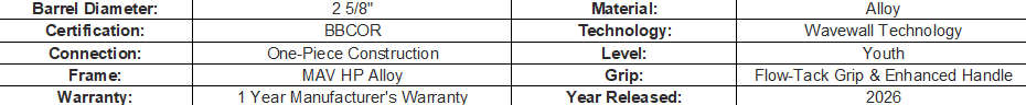 Thanks to our groundbreaking Extra Long Draw alloy processing tech, the MAV-1 is able to stretch thinner barrel walls across a wider area of the barrel, creating an enormous, sweet spot that performs right at the BBCOR limit across the entire hitting surface.
