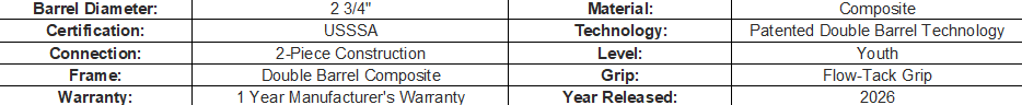 The Dub features a two-piece composite construction that maximizes barrel flex while keeping vibration to a minimum. On top of that, this USSSA bat features a ConneXion Max elastomer connection piece to interlock the handle to the barrel, ensuring smooth and powerful contact even on mishits. Additionally, the Dub uses an Optiflex handle which is specifically engineered to divide each size of this bat to give you the perfect balance between flex and stiffness, leading to improved barrel control and raw power — perfect for elite athletes looking to maximize their bat speed and performance.